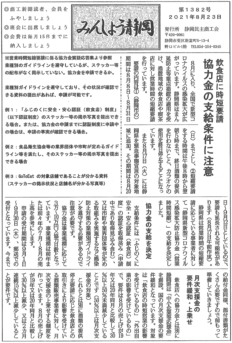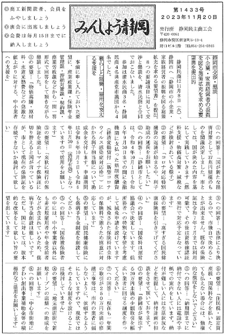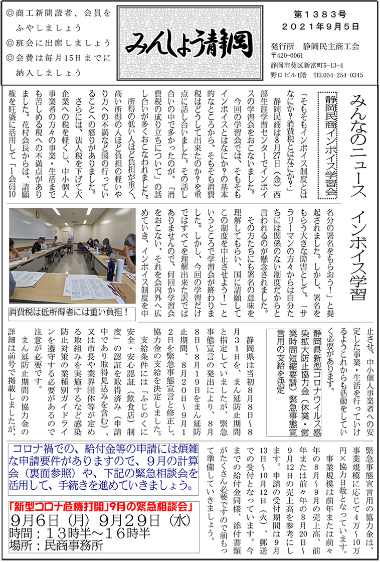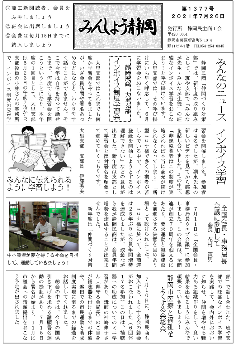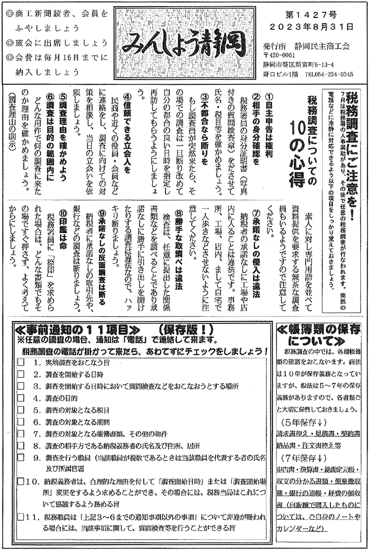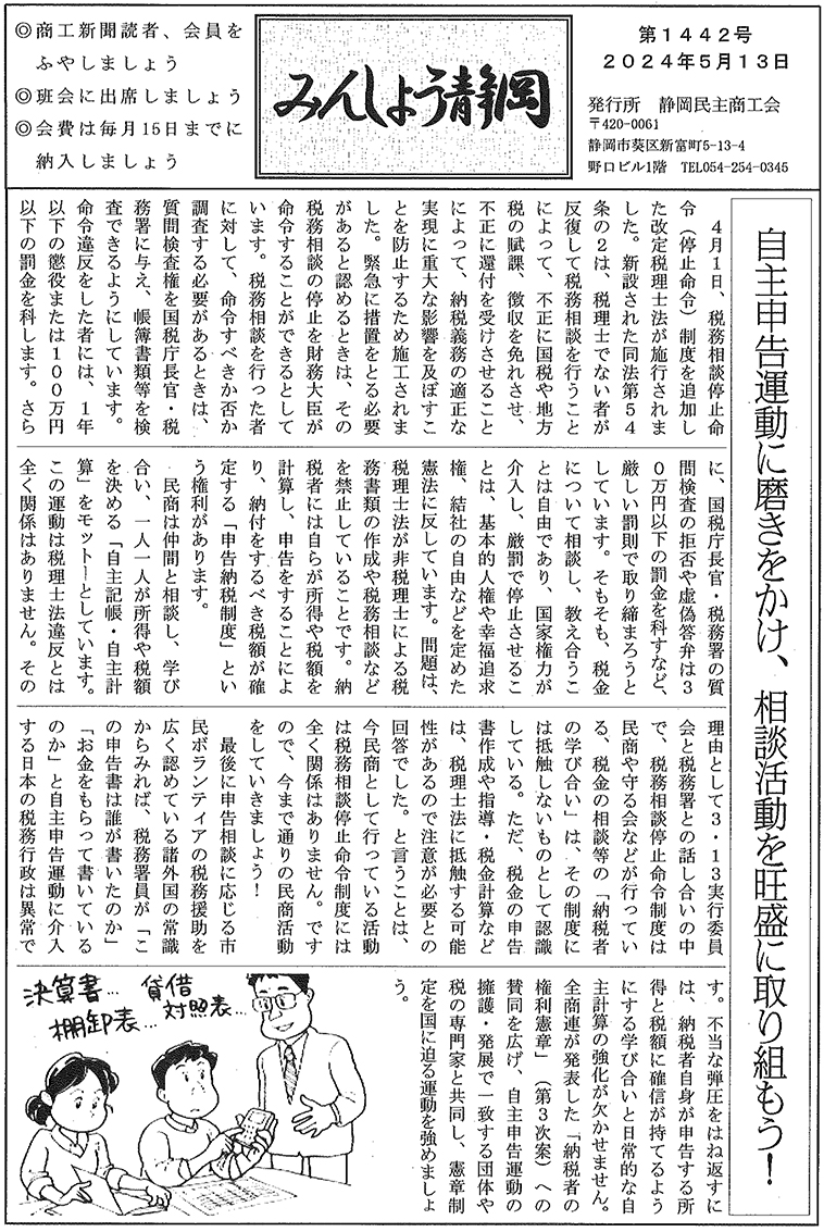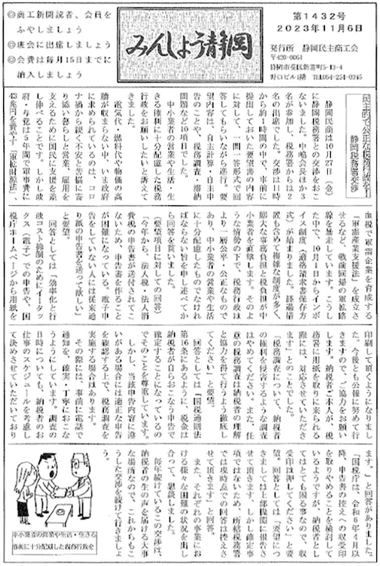 起業・経営・融資・税金・記帳・暮らしなど、中小企業の困ったは「静岡民商」にご相談ください。